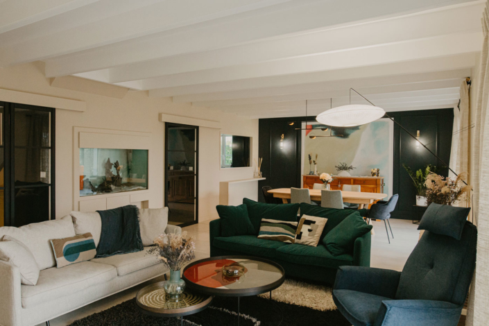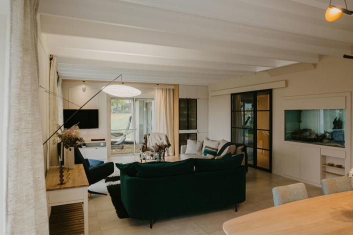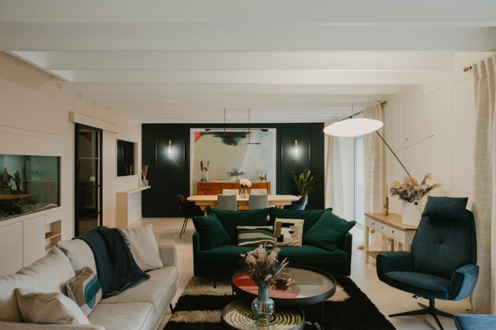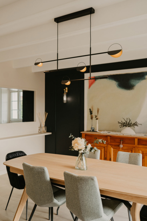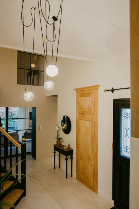 Dans cette maison, le sol, les murs, ainsi que l’ensemble du mobilier et de l’éclairage ont été revus afin d’apporter caractère et charme à cette maison.