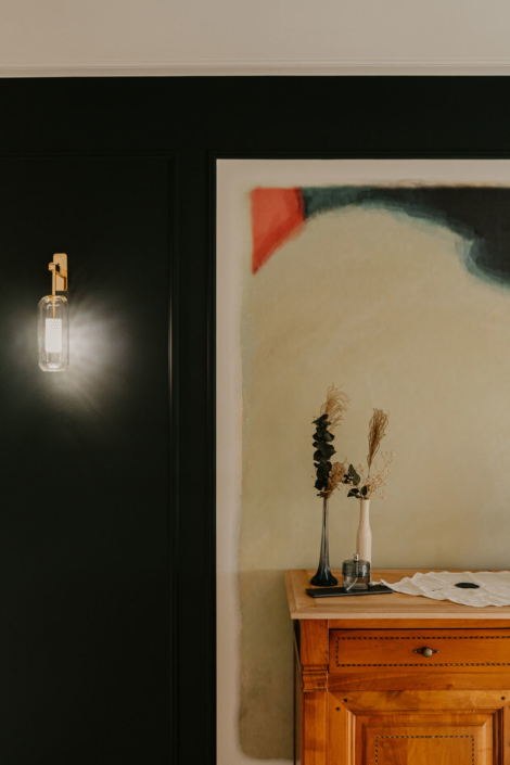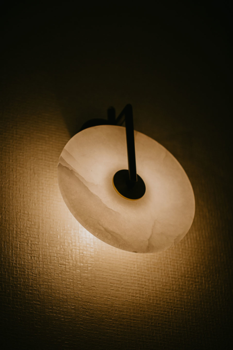 Le choix astucieux de l’applique déportée apporte une lumière douce et diffusante, créant ainsi une atmosphère apaisante.